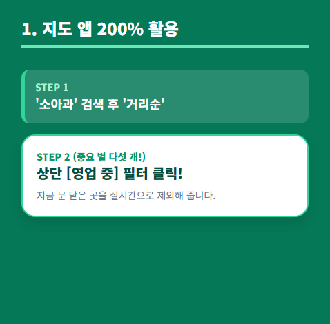 - 지도 앱 '현 위치' 필터: 네이버 지도나 카카오맵 앱에서 '가까운 소아과'를 검색한 뒤, 반드시 상단 필터에서 [영업 중] 항목을 체크하세요. 거리순으로 정렬하면 지금 내 위치에서 가장 빨리 도착할 수 있는 병원이 나열됩니다.