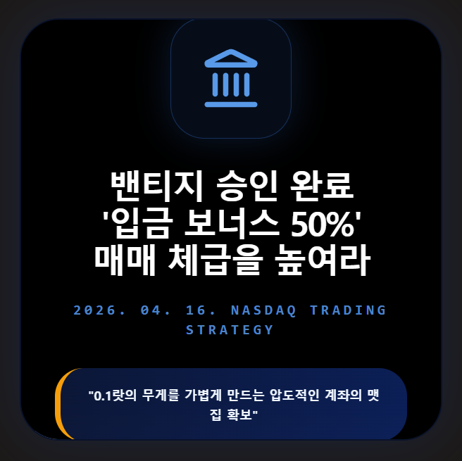2026년 4월 16일, 드디어 기다리던 밴티지(Vantage) 계좌 승인이 완료되었습니다! 오늘부터는 새로운 환경에서 본격적으로 매매를 진행하며 익숙해지는 시간을 가질 수 있을 것 같습니다.