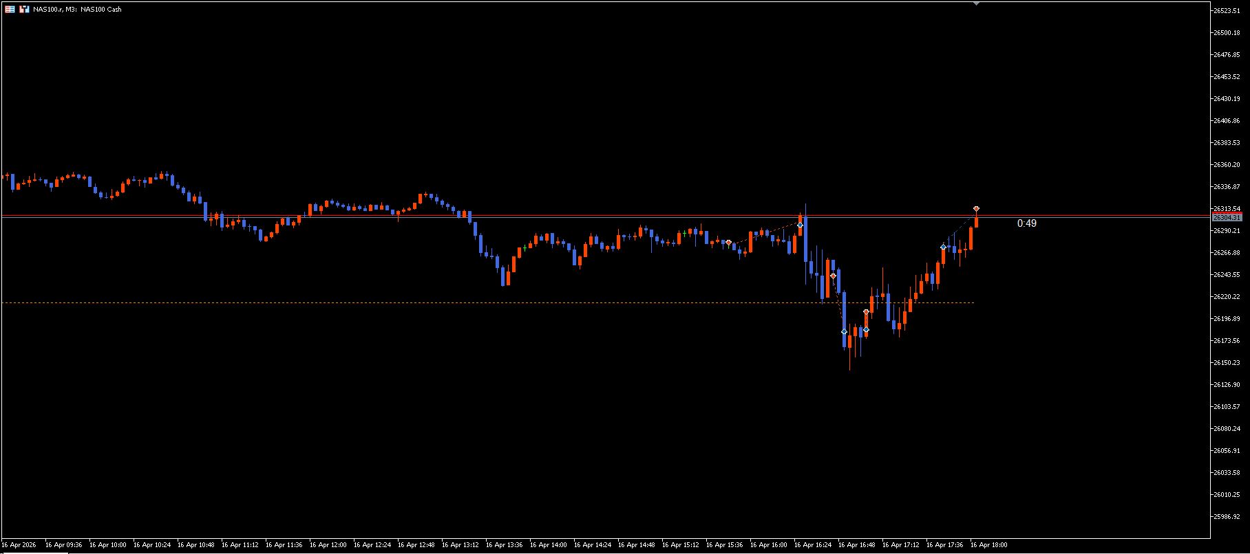 2026년 4월 16일 나스닥 100 선물 매매 기록입니다. 어제는 지표상으로 최고가를 경신하며 강력한 상승세를 보였지만, 트레이더로서 "계속 직진하기보다는 한 번쯤 쉬어가는 구간이 나오지 않을까?"라는 판단을 했습니다.