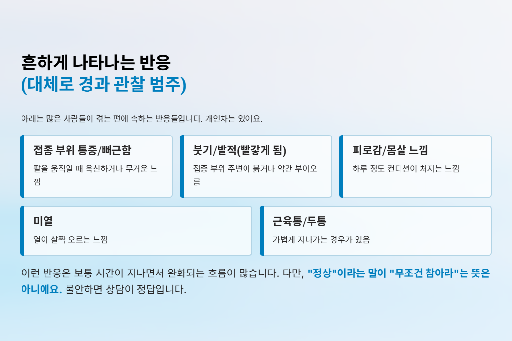 예방접종 후 몸이 약간 반응하는 건 생각보다 흔해요.