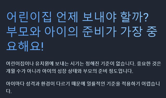 - 복직 직전에 급하게 어린이집에 보내면 아이가 큰 혼란을 겪을 수 있습니다.