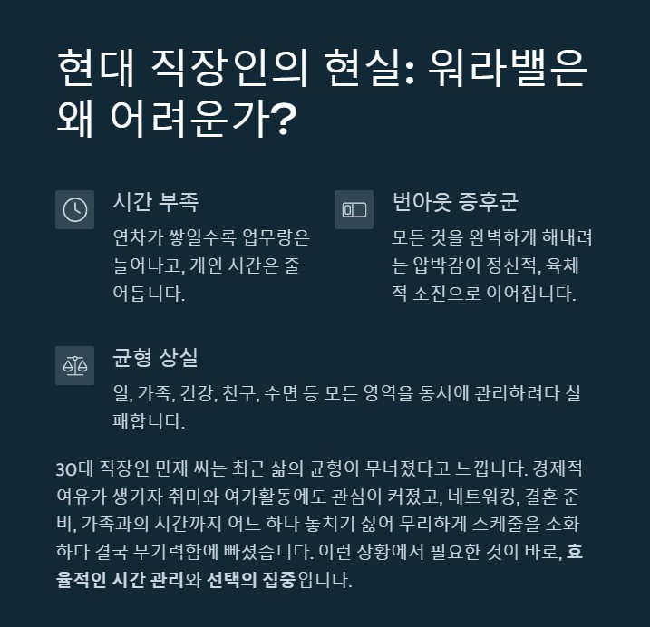 현대 직장인의 현실: 워라밸은 왜 어려운가?