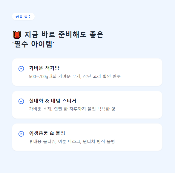 학교 결정과 상관없이 공통적으로 꼭 필요한 물건들입니다.