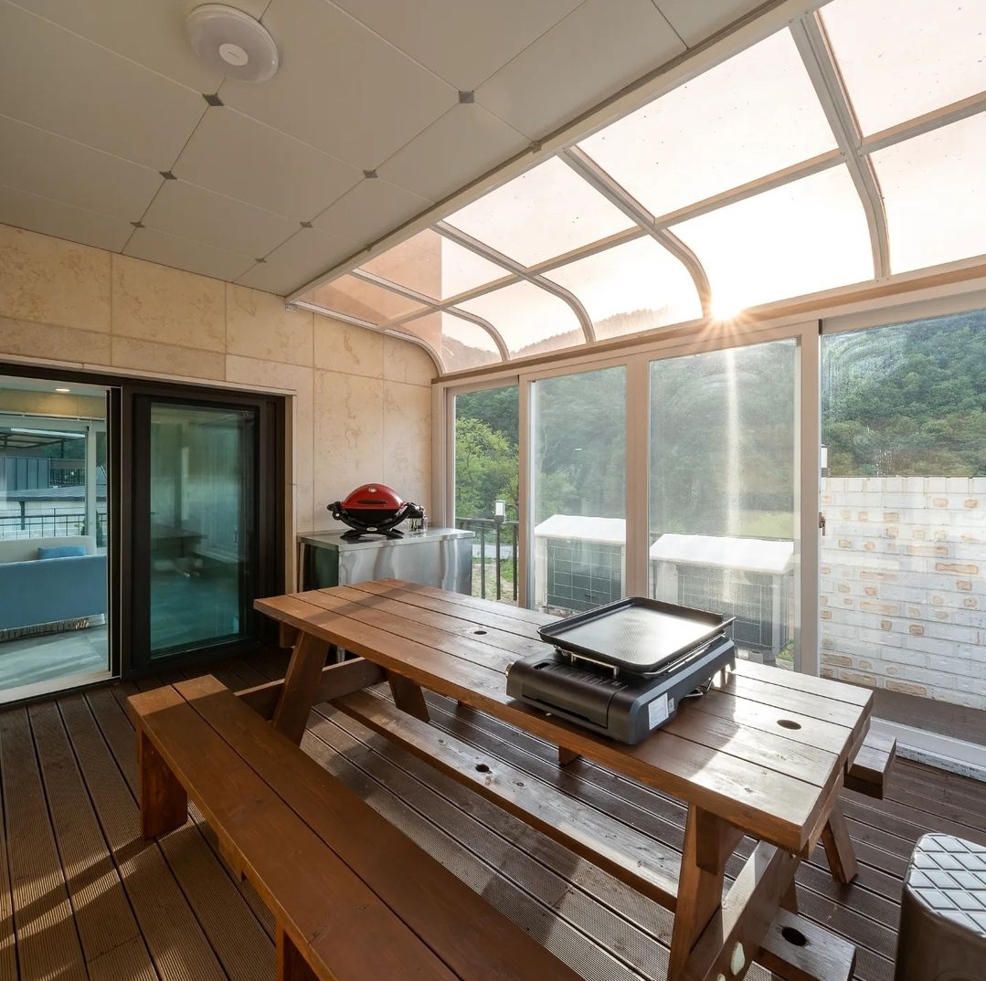 - 편리한 시설: 바베큐장(실내), 네스프레소 머신, 노래방 기기, 와인 셀러, 와인잔, 블루투스 스피커, 무료 와이파이, 비데, 잔디마당, 어린이 야외풀장(여름 한정)