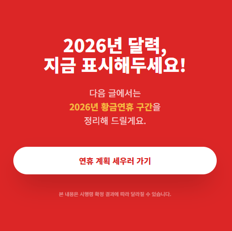 다음 글에서는 2026년 공휴일 전체 달력에서 연휴가 길어지는 구간(휴가 붙이기 좋은 날)을 한 번에 정리해볼게요.반응형